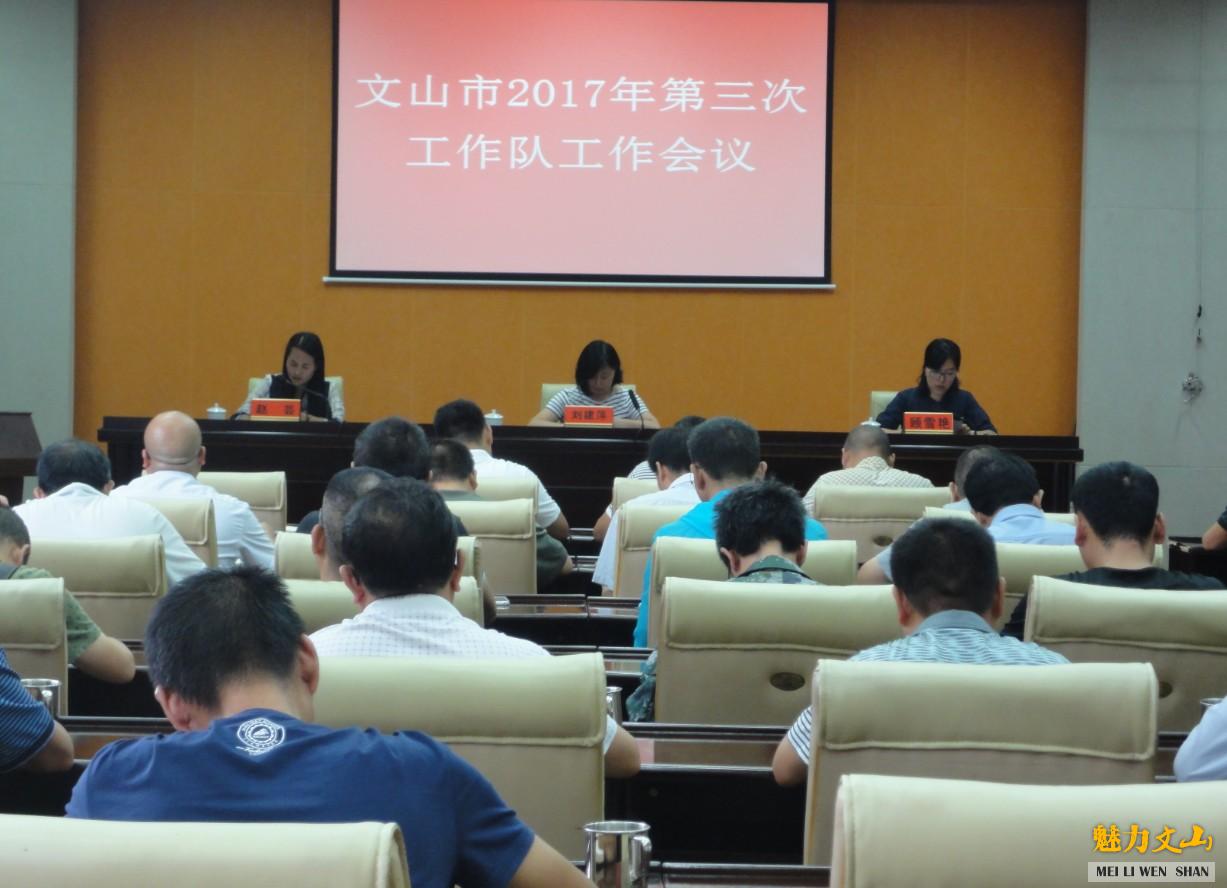 9月28日,文山市“挂包帮”“转走访”工作联席会议办公室在市会务中心一楼视频会议室召开2017年第三季度驻村扶贫工作队工作会议。市委副书记、驻村扶贫工作队总队长,市委组织部,市委农办,各有关乡镇分管领导,各驻村扶贫工作队队长共计40余人参会。